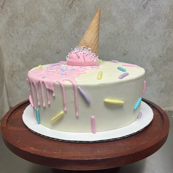8” round cake filled and iced in vanilla buttercream. You pick the cake flavor and decor! Serves 8–12 people. Call during open hours or visit our To-Go Store for more info.
